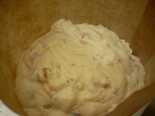 Despeje a massa em uma forma para panettone (de 500g) untada com creme vegetal, deixe pela metade da forma de massa.