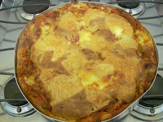 Acrescente o restante da massa e asse em forno pré-aquecido.