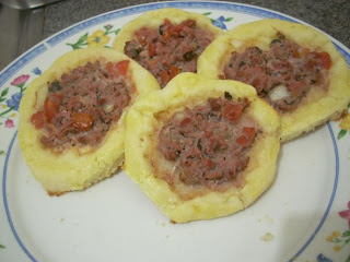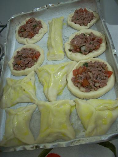 Fizemos umas de queijo (quadradas) e abertas de carne.