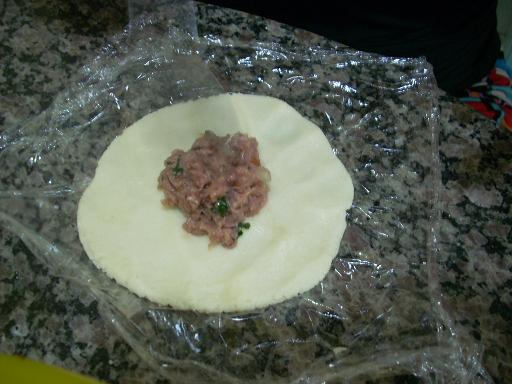Para o recheio fritei lingüiça picadinha com cebola, alho e cheiro verde.