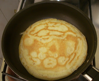 Bater tudo no liquidificador. Aquecer uma frigideira antiaderente e fazer as panquecas fritando dos dois lados.