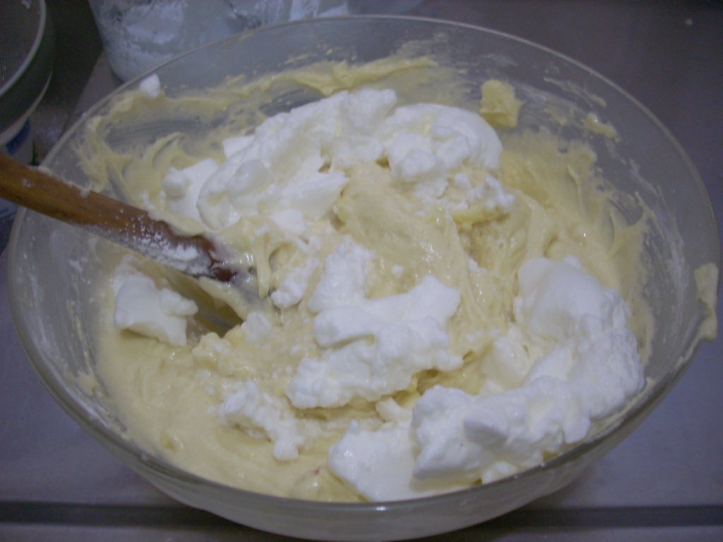 Misture a maçã picada, e por último misture lentamente as claras batidas em neve.