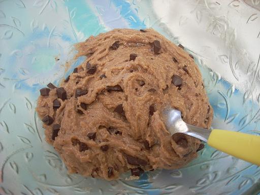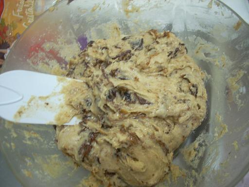 A massa fica bem pegajosa, adicione o chocolate e misture bem.