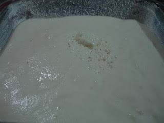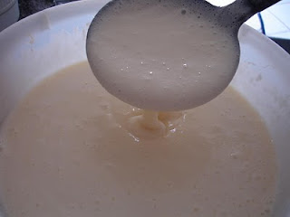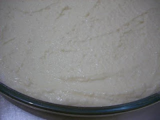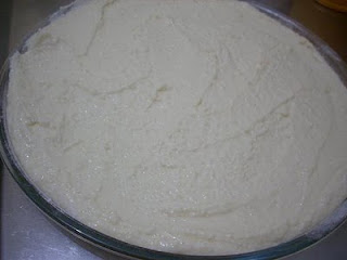A massa fica cremosa, de se espalhar com a colher.